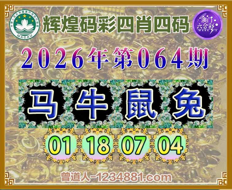 064期:《辉煌码彩》 👩🌾四肖四码👩🌾【马牛鼠兔】【01.18.07.04】开:牛18准